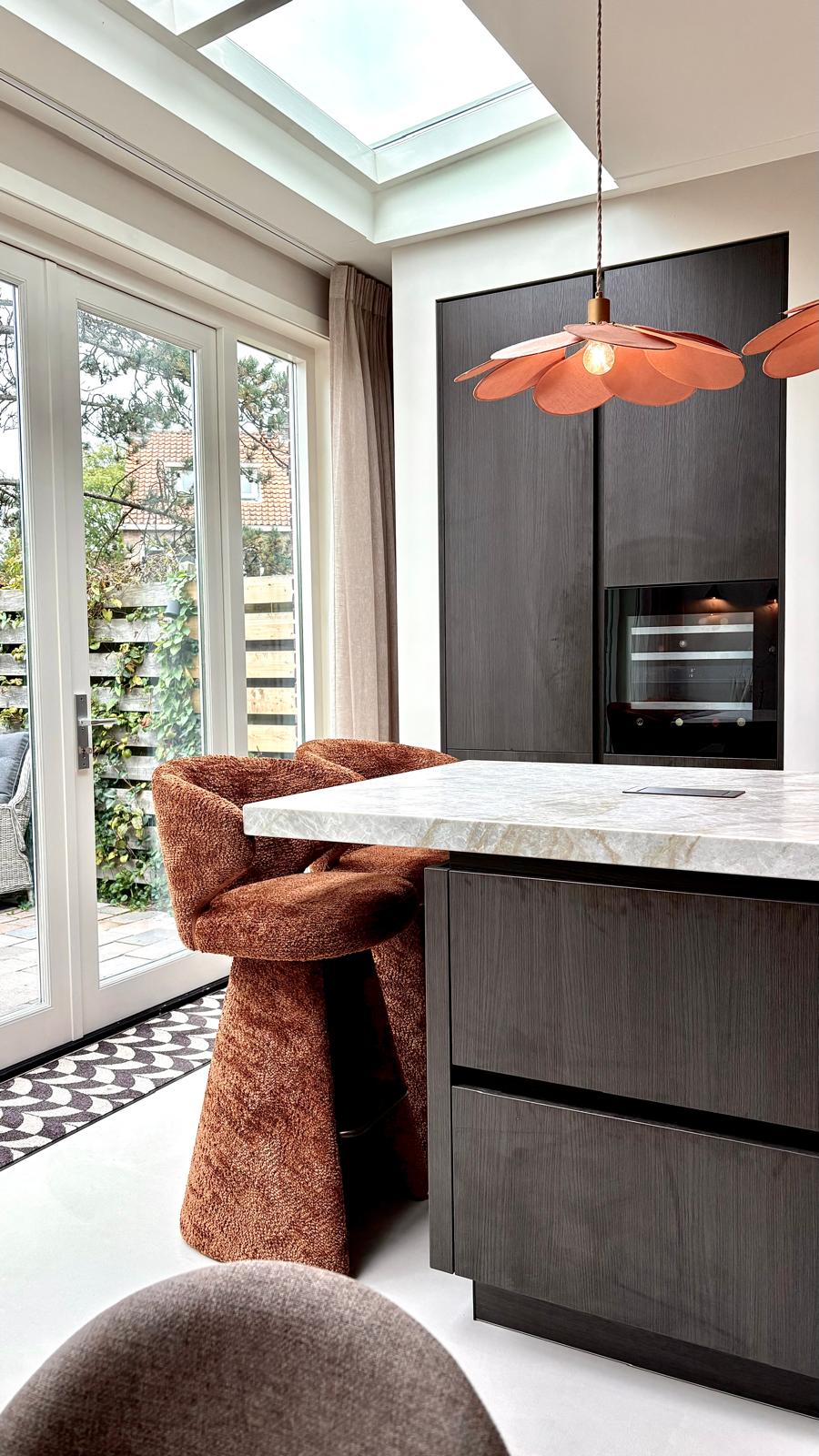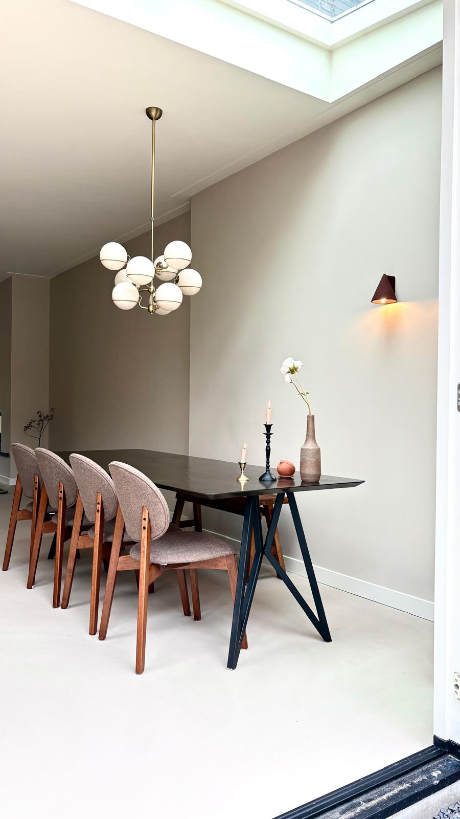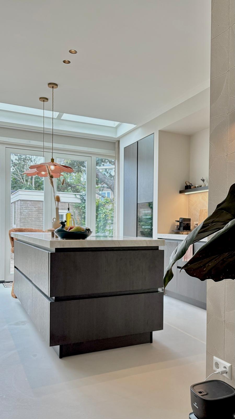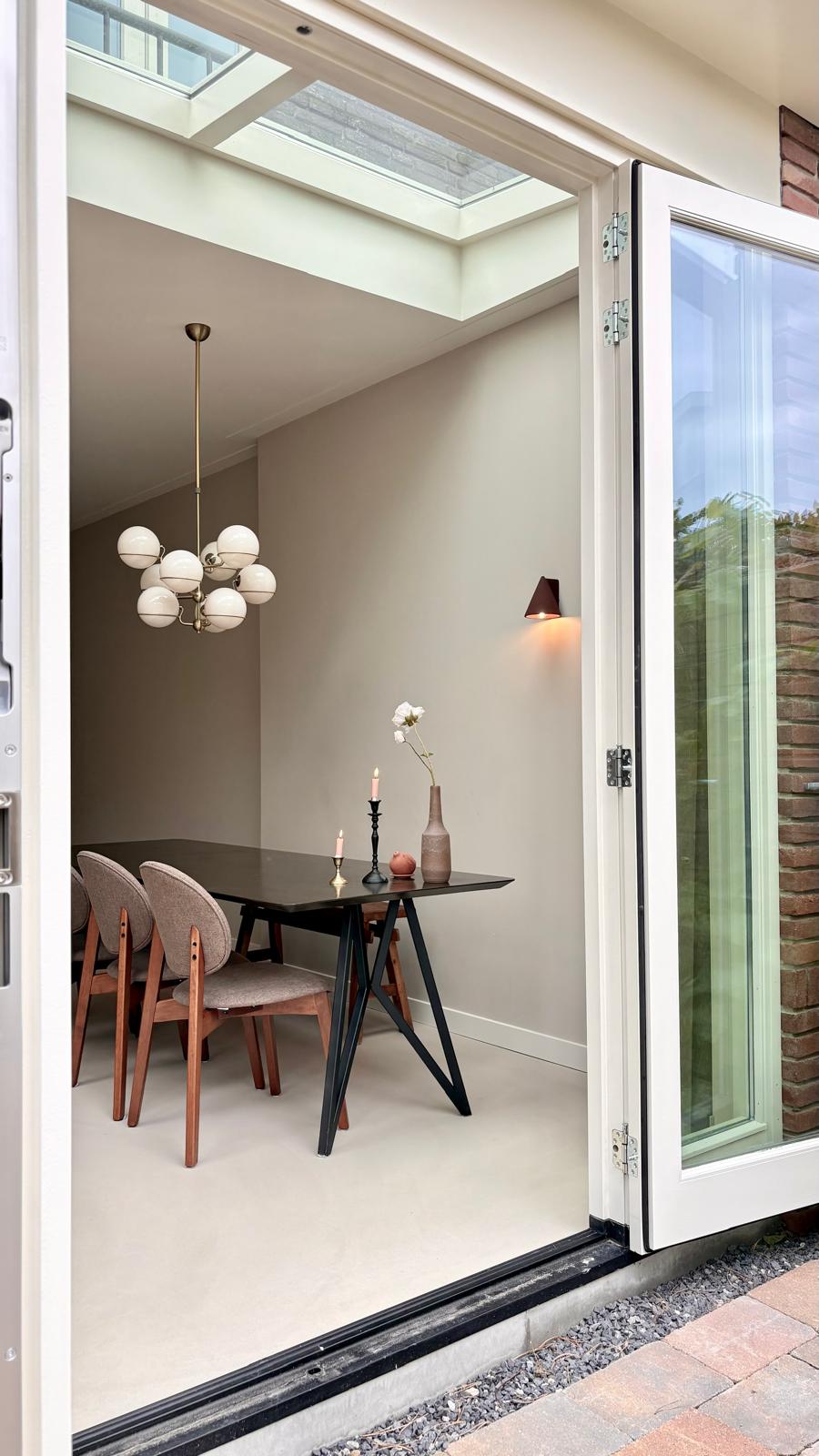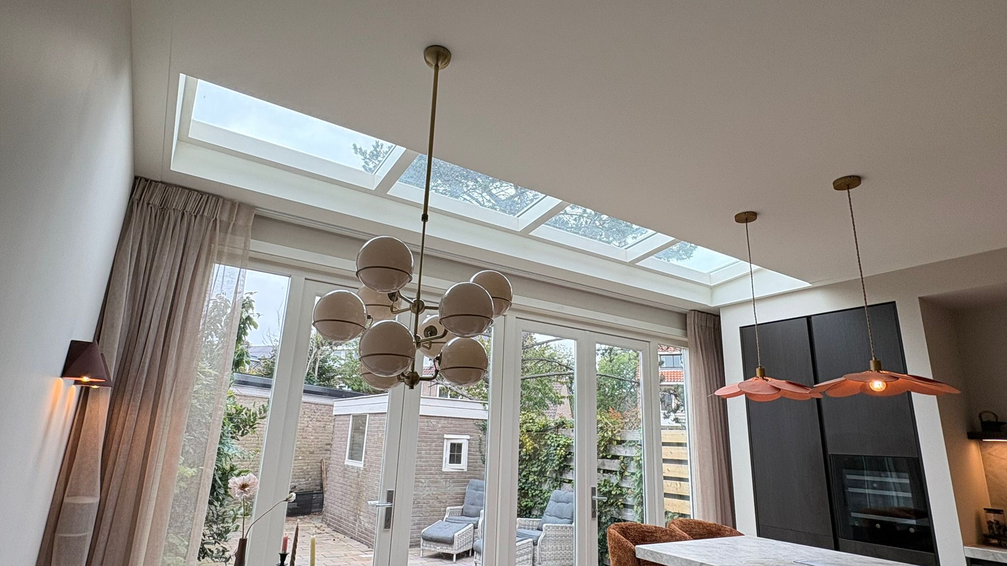 Bij deze woning hebben we een complete aanbouw gerealiseerd van drie meter diep, met een nieuwe fundering, een geïsoleerde vloer en een strak afgewerkt dak met prachtige lichtstraat die binnen en buiten met elkaar verbind. De nieuwe achtergevel kreeg een houten kozijn met openslaande deuren en zonwerend HR++ glas. Binnen zijn de plafonds vernieuwd, de muren gestuct, is er een nieuwe leefkeuken gerealiseerd– en is het geheel tot in detail afgewerkt voor een moderne, lichte leefruimte.