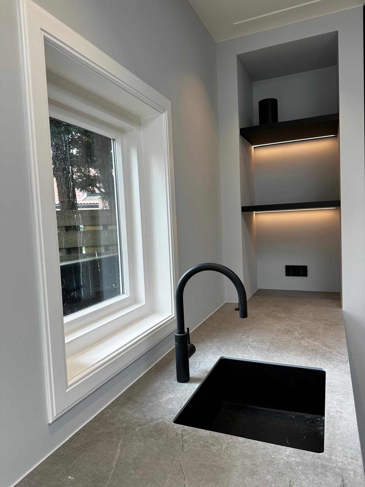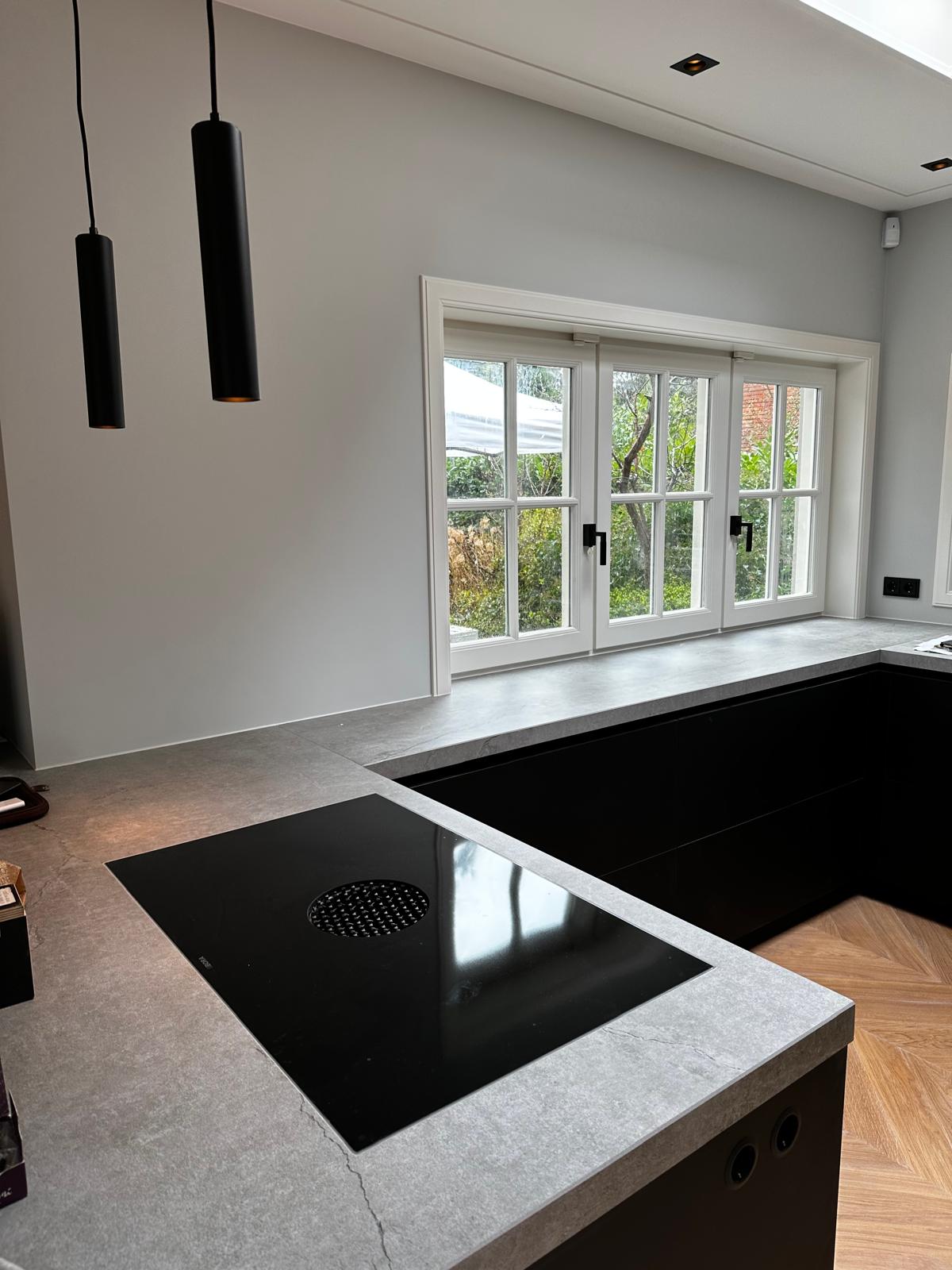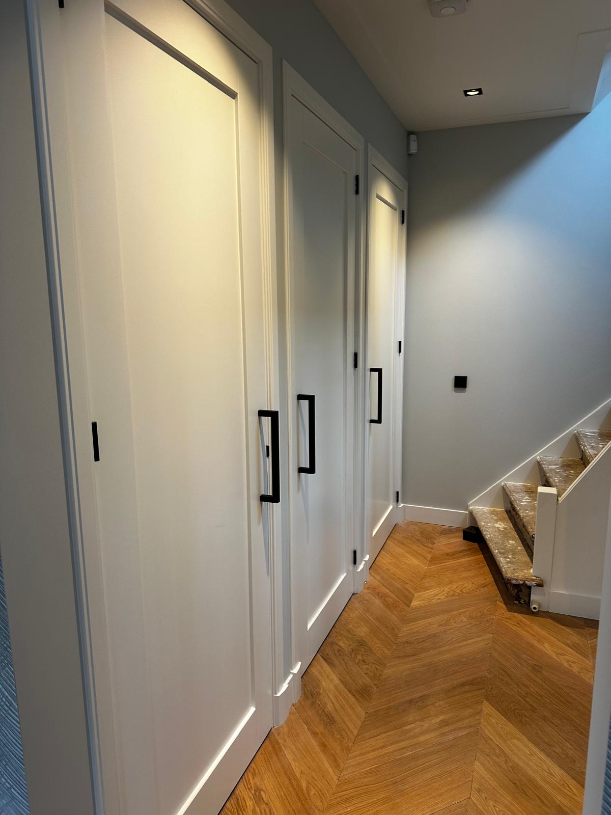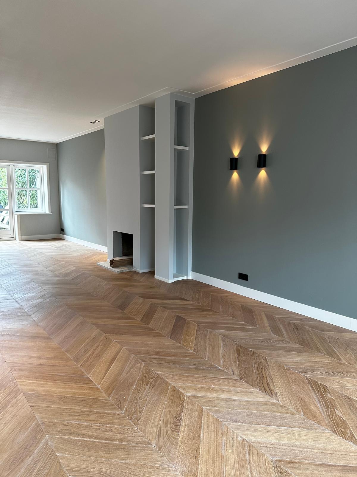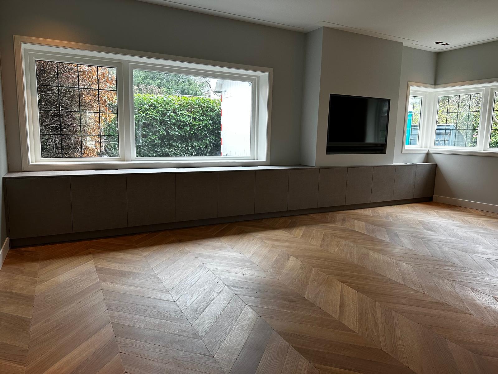 Aan deze woning hebben we een complete vernieuwing van de begane grond uitgevoerd. Alle oude plafonds, wanden, vloeren en de keuken zijn verwijderd, waarna nieuwe voorzetwanden met isolatie, plafonds en maatwerk kasten zijn aangebracht. De dragende muren tussen woonkamer en keuken zijn gesloopt en vervangen door een nieuwe staalconstructie met HEB- en hoekprofielen, inclusief kolommen — al het staalwerk op maat geleverd door ons zusterbedrijf Van Vorden Staal BV.